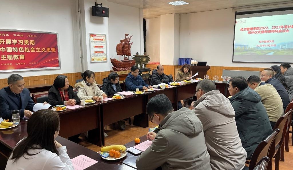 4位榮休教師回顧了30余年來(lái)工作的點(diǎn)點(diǎn)滴滴,分享了學(xué)習(xí)、工作、生活上的深切體會(huì),有時(shí)光荏苒的感慨、有貢獻(xiàn)學(xué)校、學(xué)院事業(yè)發(fā)展成就的自豪、有堅(jiān)守三尺講臺(tái)育人育才的榮耀、有見(jiàn)證青年教師成長(zhǎng)的欣慰、有珍惜師生同事深厚情誼的摯言。他們紛紛表示,將一如既往地關(guān)心支持學(xué)院未來(lái)發(fā)展,義不容辭獻(xiàn)出自己的一份力量。經(jīng)濟(jì)管理學(xué)院黨委書記王宏衛(wèi)代表學(xué)院感謝各位老師為學(xué)院教育事業(yè)的傾心付出,肯定了各位老師為學(xué)院發(fā)展做出的突出貢獻(xiàn)。院長(zhǎng)王君萍宣讀了榮休教師名單和退休通知單。與會(huì)青年教師代表作了交流發(fā)言。