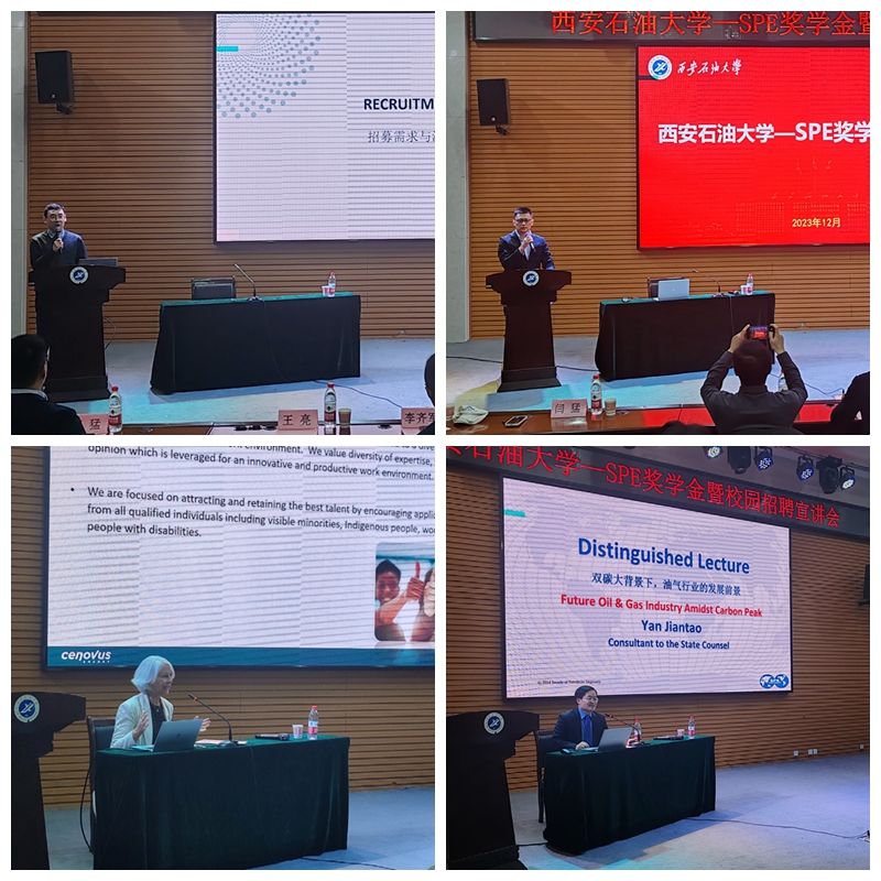 SPE南海分會委員魯申衛(wèi),CENOVUS公司中國區(qū)人力資源經(jīng)理陳芳、人力資源主管劉輝、人力資源分析師柳曼;我校相關學院負責人及200余名學生代表參加相關活動。