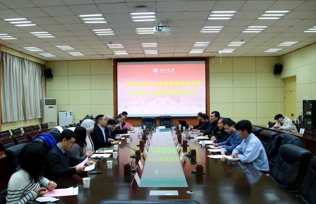 李齊軍介紹了SPE整體情況和南海分會的組織架構及主要業(yè)務,并就本次來校設立SPE獎學金、招聘畢業(yè)生、開展學術交流等相關事宜作了說明。他強調,作為交流合作的第一站,非常期待能與學校在國際化人才培養(yǎng)、學術交流等方面開展務實合作,共同為石油行業(yè)發(fā)展做出積極貢獻。