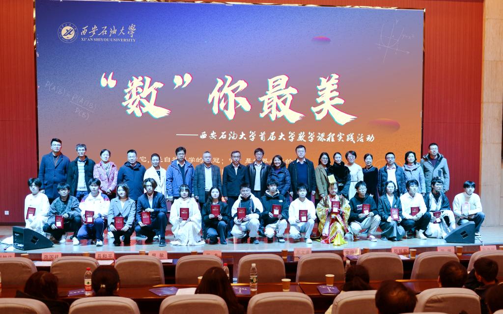 12月1日晚,由教務(wù)處、理學(xué)院、校團(tuán)委主辦,理學(xué)院高等數(shù)學(xué)教學(xué)部、數(shù)學(xué)文化課程組、數(shù)學(xué)建模協(xié)會承辦的首屆大學(xué)數(shù)學(xué)課程實踐展演活動--“‘?dāng)?shù)’你最美”在鄠邑校區(qū)弘石學(xué)術(shù)報告廳舉行。校黨委副書記張木、副校長蘇文甫出席活動,并向每位參演學(xué)生頒發(fā)證書。教務(wù)處、高評中心、校團(tuán)委、理學(xué)院相關(guān)負(fù)責(zé)人,數(shù)學(xué)學(xué)科教師代表以及400余名學(xué)生觀看了本次展演。