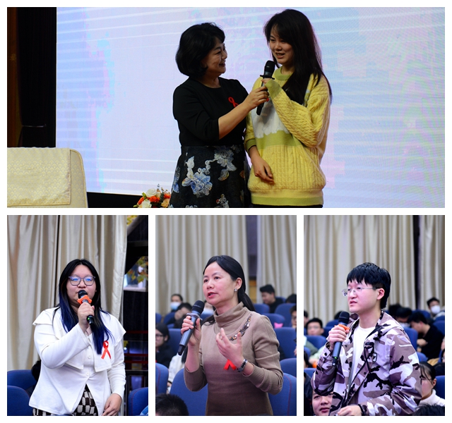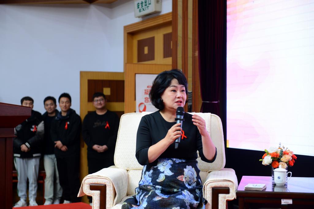 訪談環(huán)節(jié),“紅絲帶”健康大使鞠萍與孫永濤教授、任強所長通過專家訪談、師生提問互動等方式,娓娓道來,為同學(xué)們詳細講解了艾滋病的傳播途徑、感染風(fēng)險、預(yù)防措施,引導(dǎo)學(xué)生樹立正確的價值觀,正確認識艾滋病,對待艾滋病,共同維護健康和諧的校園生活,努力成長為能吃苦、敢擔(dān)當、有理想、肯奮斗的新時代好青年。