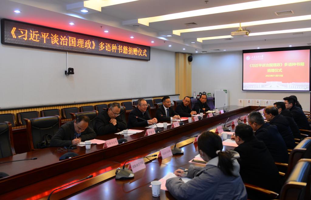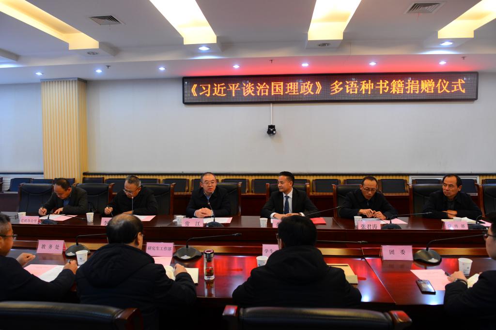 學校黨政辦公室,黨委宣傳部、學生工作部、研究生工作部,團委,教務處、圖書館,馬克思主義學院、外國語學院、國際教育學院主要負責同志參加了捐贈儀式。