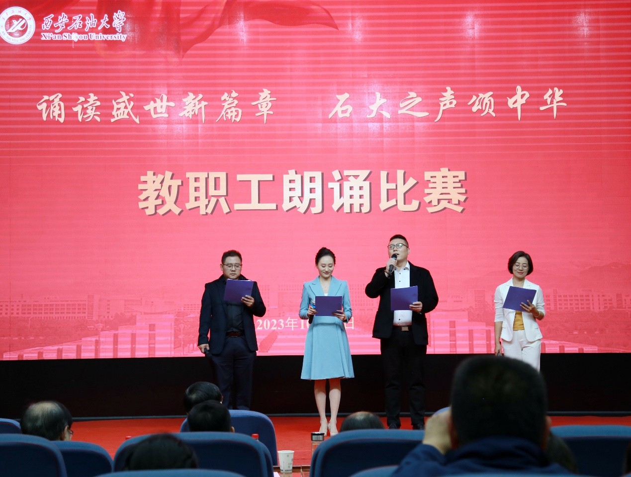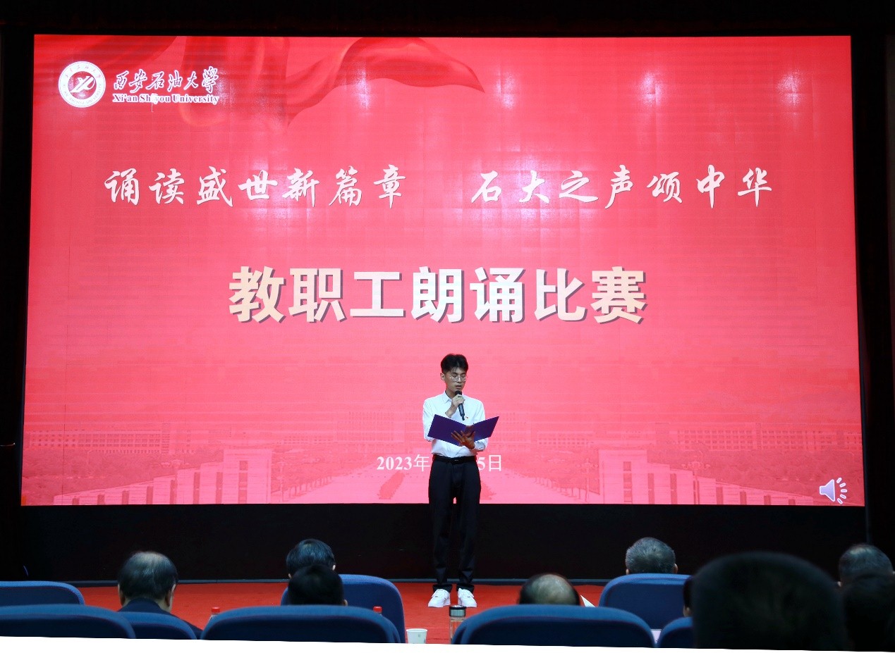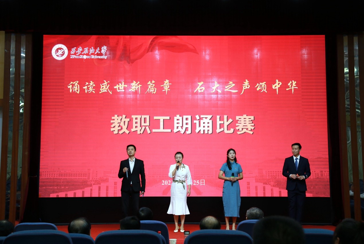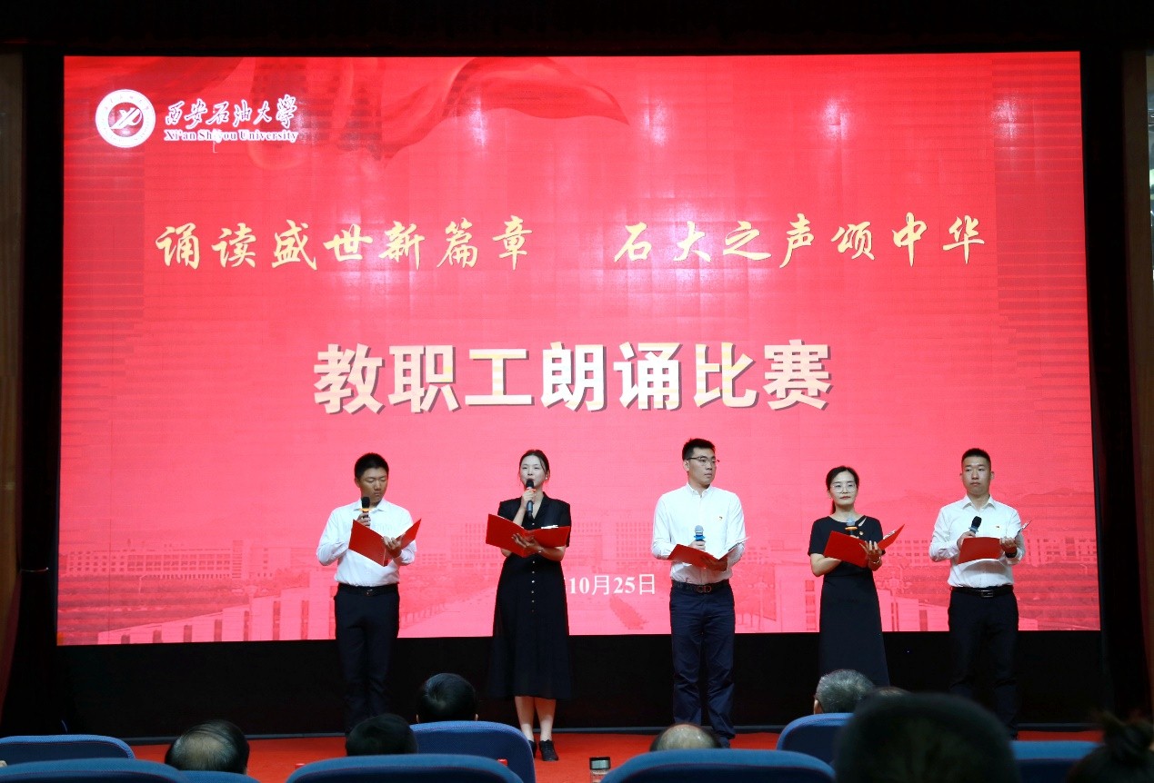 為深入學習宣傳貫徹習近平新時代中國特色社會主義思想和習近平總書記對宣傳思想文化工作的重要指示精神,弘揚石油精神、鐵人精神,進一步強化思想引領、凝聚思想共識,推進教職工文化建設、豐富教職工精神生活,10月25日下午,我?!罢b讀盛世新篇章 石大之聲頌中華”教職工朗誦比賽在雁塔校區(qū)會議中心學術報告廳舉行,校黨委書記常江、副校長蘇文甫出席了此次活動。22家部門工會選送了作品參賽,200余名師生觀看了比賽。