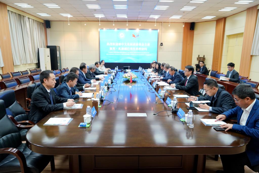 常江對披尼·扎祿頌巴主席一行來訪表示熱烈歡迎,并簡要介紹學校發(fā)展歷史與辦學特色。他表示,近年來,泰中文化促進委員會為促進中泰兩國文化、教育經(jīng)貿(mào)交流開展了各類形式多樣、富有成效的交流活動,是中泰兩國溝通合作的橋梁和紐帶。他希望在泰中文化促進委員會的推動下,進一步推動我校與泰國政府、高校高水平教育合作交流。