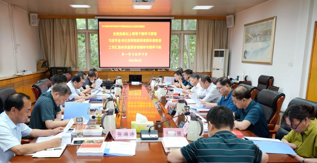 本次專題學(xué)習班采用視頻輔導(dǎo)、分組領(lǐng)學(xué)、個人學(xué)習等多種方式進行。全體學(xué)員認真聽取了趙一德同志在全省市廳級主要領(lǐng)導(dǎo)干部專題學(xué)習班第一期上的主題輔導(dǎo)報告暨黨課,觀看了省委教育工委書記劉建林同志的主題輔導(dǎo)報告暨黨課視頻,聽取了《貫徹落實習近平總書記重要講話精神,奮力譜寫中國式現(xiàn)代化建設(shè)的陜西新篇章》專題講座,聽取了省委教育工委委員、省教育廳副廳長王海波在結(jié)業(yè)式上的總結(jié)講話。在分組領(lǐng)學(xué)和專題研討環(huán)節(jié),校黨委理論學(xué)習中心組帶頭領(lǐng)學(xué)了習近平總書記在聽取陜西省委和省政府工作匯報時的重要講話、習近平主席在中國-中亞峰會上的主旨講話、習近平總書記歷次來陜考察重要講話重要指示等內(nèi)容。學(xué)員們緊扣培訓(xùn)主題,結(jié)合學(xué)校事業(yè)發(fā)展和“十四五”發(fā)展規(guī)劃的目標任務(wù)和個人學(xué)習、工作實際,談體會、議收獲,談設(shè)想、提建議,深入開展學(xué)習研討,交流分享心得體會。