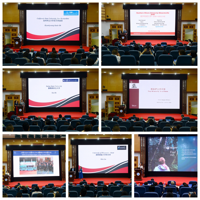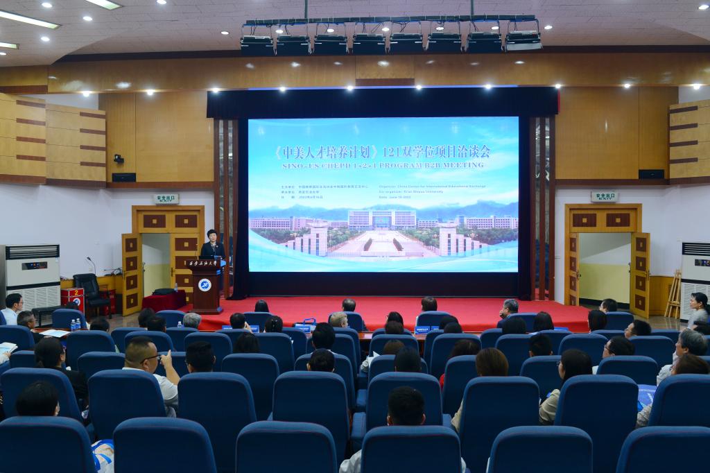 6月16日,由中國教育國際交流協(xié)會中教國際教育交流中心主辦,我校承辦的2023年《中美人才培養(yǎng)計劃》121雙學位項目洽談會在我校雁塔校區(qū)會議中心學術報告廳舉行。陜西省教育廳二級巡視員董俠,我校副校長張榮軍,中教國際教育交流中心主任張靖、副主任吳琴,美國州立大學與學院學會及美國加州州立大學圣貝納迪諾、美國塞勒姆州立大學等121項目7所美方高校代表,全省27所高校代表,我校國際交流與合作處、教務處、國際教育學院及各院(系)負責人等近百名中外嘉賓出席會議,共商中美教育合作交流大計。