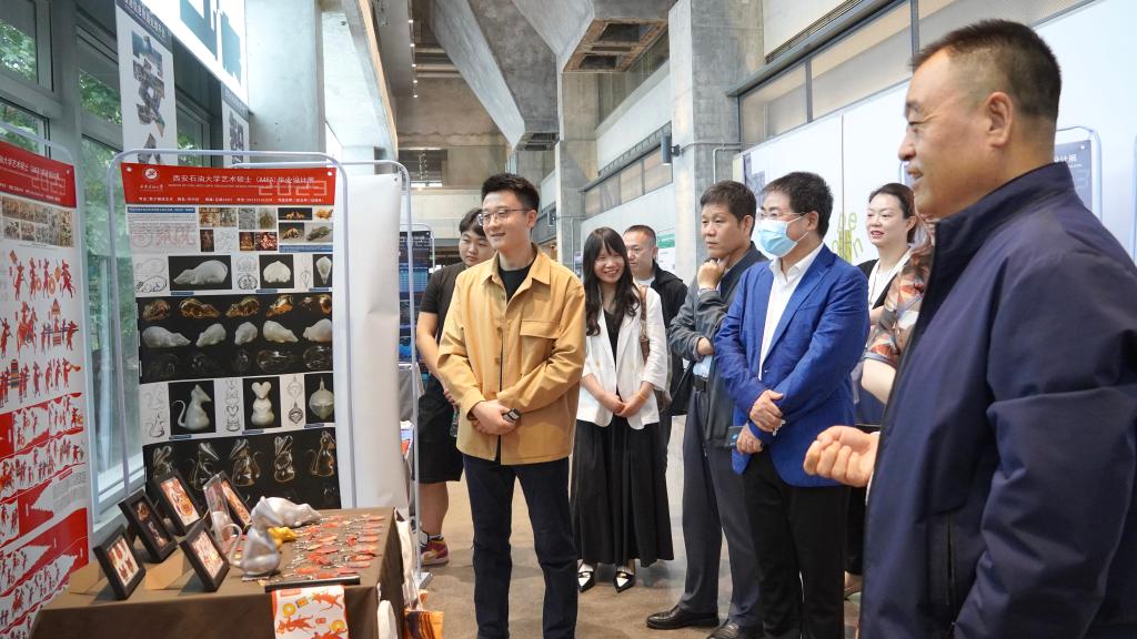 開幕式結(jié)束后,同學(xué)們在各自展位前向與會領(lǐng)導(dǎo)嘉賓詳細介紹了自己的創(chuàng)作理念和研究方法,從技藝融合的角度綜合性開展老舊礦業(yè)社區(qū)人居環(huán)境更新設(shè)計、工業(yè)遺產(chǎn)歷史風(fēng)貌區(qū)街坊改造設(shè)計、非物質(zhì)文化遺產(chǎn)保護與傳承研究、民俗民藝拓展應(yīng)用等實踐創(chuàng)新設(shè)計,得到了與會嘉賓的贊揚和好評。