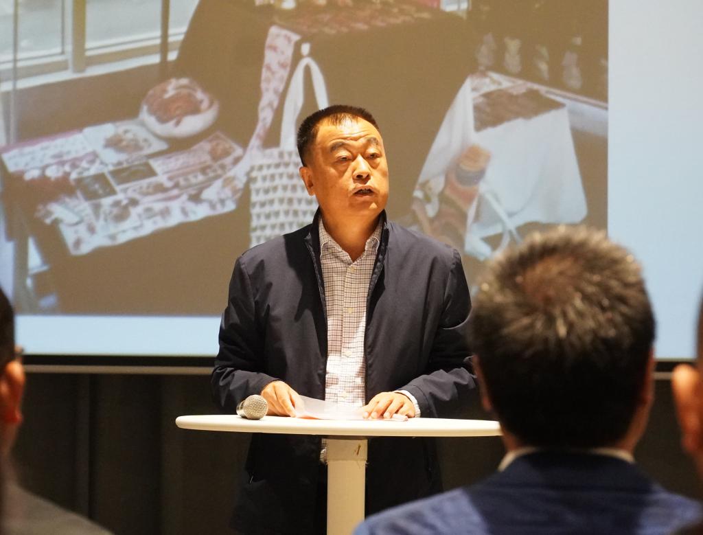 魏勇代表本屆藝術(shù)碩士畢業(yè)設(shè)計作品展協(xié)辦方西安山灰藝術(shù)社區(qū)發(fā)言。他首先代表山灰藝術(shù)社區(qū)向參加本次展覽開幕式的嘉賓與師生表示感謝,山灰藝術(shù)社區(qū)希望通過搭建展覽平臺,為我校師生提供良好的學(xué)習(xí)交流空間,增加藝術(shù)氛圍和活力,他表示未來將一如既往支持我校藝術(shù)展覽和學(xué)術(shù)交流活動,更好地促進彼此間的合作。
