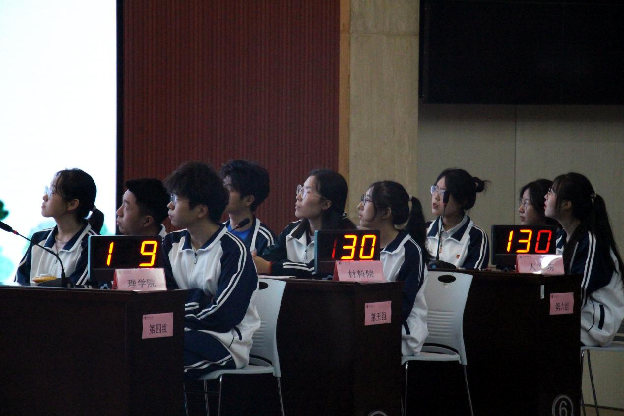 決賽分為團隊展示、必答題、案例題、觀眾互動、搶答題、闖關(guān)風險題六個環(huán)節(jié),參賽選手沉著冷靜作答,觀賽學生積極參加互動。最終理學院代表隊獲得一等獎,人文學院代表隊和石油工程學院代表隊獲得二等獎,材料科學與工程學院代表隊、經(jīng)濟管理學院代表隊和地球科學與工程學院代表隊獲得三等獎。