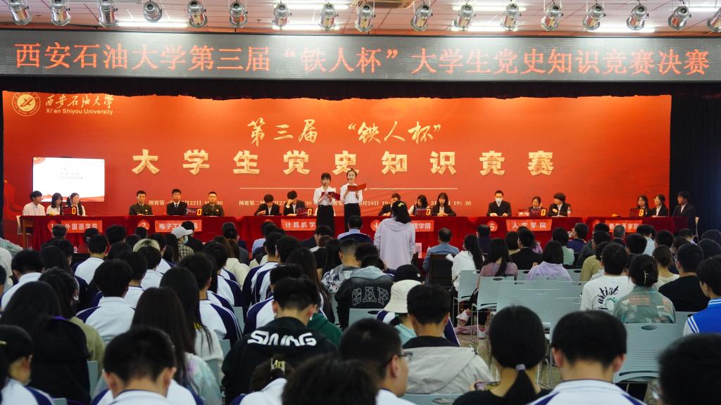 5月29日晚,由馬克思主義學(xué)院、教務(wù)處主辦,組織部、宣傳部、學(xué)工部和校團(tuán)委協(xié)辦的西安石油大學(xué)第三屆“鐵人杯”大學(xué)生黨史知識(shí)競(jìng)賽決賽在鄠邑校區(qū)騰輝大學(xué)生活動(dòng)中心舉行。校黨委副書記張木蒞臨現(xiàn)場(chǎng)指導(dǎo),相關(guān)部門、院(系)負(fù)責(zé)人、教師及學(xué)生代表觀摩了此次競(jìng)賽活動(dòng)。