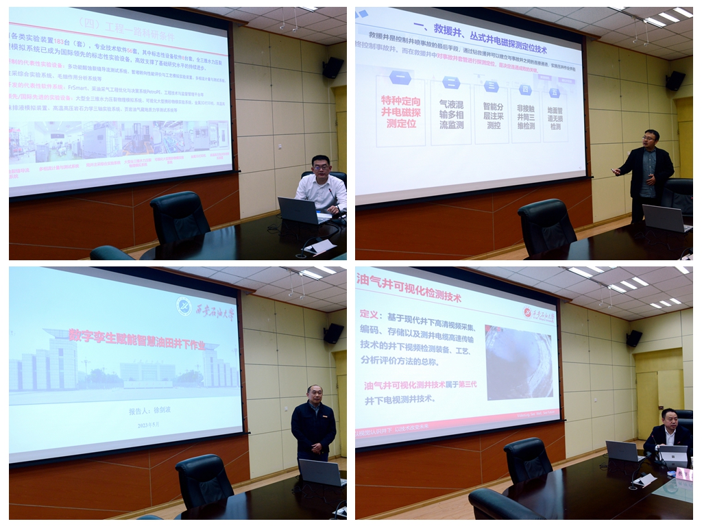 會上,勘探院工程業(yè)務(wù)部綜合辦主任李濤介紹了勘探院的基本情況以及工程一路的組織架構(gòu)和取得的主要業(yè)績。我校嚴(yán)正國、黨博、徐劍波分別匯報了所在團(tuán)隊的研究成果、核心技術(shù)和推廣應(yīng)用情況。隨后,與會人員圍繞勘探開發(fā)領(lǐng)域的相關(guān)技術(shù)和合作方向進(jìn)行了深入交流和探討。