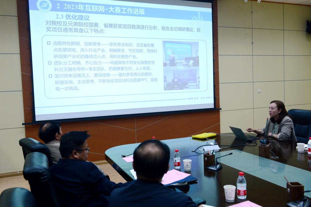 會上,賈莉娜對本科教育教學(xué)評估中創(chuàng)新創(chuàng)業(yè)教育指標(biāo)體系進(jìn)行了解讀,并對我校2023年“互聯(lián)網(wǎng)+”大賽工作和大學(xué)生創(chuàng)新創(chuàng)業(yè)訓(xùn)練計(jì)劃項(xiàng)目進(jìn)行總結(jié)與部署。