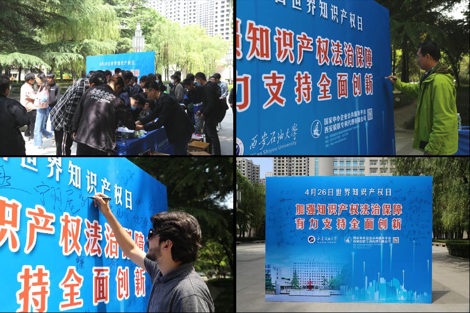 本次“世界知識產(chǎn)權(quán)日”系列宣傳活動受到了學(xué)校師生的廣泛關(guān)注和歡迎。在東方石油樓前設(shè)置知識產(chǎn)權(quán)宣傳幕墻,活動現(xiàn)場設(shè)立咨詢臺,向師生宣傳、講解知識產(chǎn)權(quán)保護相關(guān)法律法規(guī)、申請專利和版權(quán)的方法和途徑、商標(biāo)的注冊與續(xù)展等知識,發(fā)放宣傳資料等1500余份,解答師生咨詢近40人次,并且?guī)熒筒糠至魧W(xué)生們在宣傳幕墻上踴躍簽名,以表達(dá)對知識產(chǎn)權(quán)的尊重與維護。
