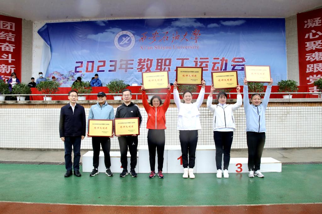 人文學(xué)院工會(huì)代表隊(duì)、機(jī)關(guān)七工會(huì)代表隊(duì)、石油工程學(xué)院工會(huì)代表隊(duì)、機(jī)關(guān)一工會(huì)代表隊(duì)、電子工程學(xué)院工會(huì)代表隊(duì)、機(jī)關(guān)八工會(huì)代表隊(duì)榮獲運(yùn)動(dòng)會(huì)“精神文明先進(jìn)集體”稱(chēng)號(hào),雷西合為獲獎(jiǎng)單位頒獎(jiǎng)。
