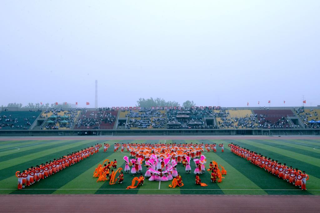 由校團(tuán)委精心組織編導(dǎo)的大型團(tuán)體舞蹈《盛世歡歌》氣勢恢宏、場面壯觀,表現(xiàn)了我校師生積極向上的精神風(fēng)貌,把開幕式推向了高潮。