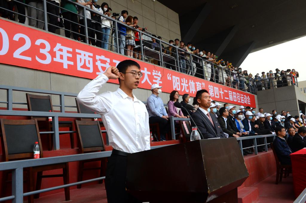 體育學(xué)院教師李海林、學(xué)生代表劉思宇分別作為裁判員和運動員代表宣誓。