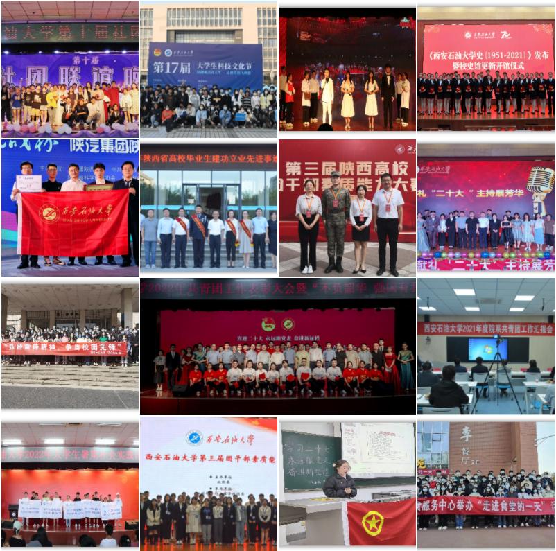 強(qiáng)化思想引領(lǐng),開展“青年大學(xué)習(xí)”網(wǎng)上團(tuán)課學(xué)習(xí)活動,參與學(xué)生達(dá)292513人次,五四評優(yōu)表彰累計(jì)評選先進(jìn)個人2812人,先進(jìn)集體60個;開展校級主題團(tuán)日活動4次;1名學(xué)生榮獲第十屆“陜西好青年”榮譽(yù)稱號、1名學(xué)生獲評“2021年中國大學(xué)生自強(qiáng)之星”、1名學(xué)生獲評“2021年陜西省大學(xué)生自強(qiáng)之星標(biāo)兵”、1名學(xué)生獲評“2021年陜西省大學(xué)生自強(qiáng)之星”、1名學(xué)生獲評“2021年中國電信獎學(xué)金·天翼獎”;校團(tuán)委、學(xué)生會官方新媒體平臺關(guān)注人數(shù)達(dá)5萬余人,全年累計(jì)發(fā)布圖文、視頻推送800余篇,月均瀏覽量22000余次。加強(qiáng)組織建設(shè),我校2個院(系)團(tuán)委入選“全省高校團(tuán)建標(biāo)桿院系”培育創(chuàng)建單位,3個團(tuán)支部入選“全省高校團(tuán)建樣板支部”培育創(chuàng)建單位;順利完成第十四期校級青馬班培訓(xùn),團(tuán)學(xué)干部培訓(xùn)班、2022級新任團(tuán)支部書記培訓(xùn)、2022年學(xué)生社團(tuán)負(fù)責(zé)人培訓(xùn)班、第十期學(xué)生會骨干培訓(xùn)班和新媒體技能培訓(xùn)講座,累計(jì)培訓(xùn)學(xué)生干部1200余人,并推薦3名學(xué)生參加2022年省級“大學(xué)生骨干培訓(xùn)班”;舉辦我校第三屆團(tuán)干部素質(zhì)能力大賽,推薦5名專職團(tuán)干部與10名學(xué)生團(tuán)干部參加省賽,榮獲“專職團(tuán)干部組”省級三等獎1項(xiàng)、優(yōu)秀獎1項(xiàng),“學(xué)生團(tuán)干部組”省級三等獎2項(xiàng)。加強(qiáng)學(xué)風(fēng)建設(shè),提升校園文化,積極開展國家獎學(xué)金獲得者經(jīng)驗(yàn)分享會、考研經(jīng)驗(yàn)交流分享會、英語四六級經(jīng)驗(yàn)分享會、高數(shù)輔導(dǎo)課、英語四六級模擬考試和線上自習(xí)室等活動;全年舉辦“明德大講堂”與“石大青年論壇”報(bào)告會20余場,累計(jì)參與學(xué)生共計(jì)13000余人次;舉辦我?!八墓?jié)兩進(jìn)”系列活動,“不負(fù)韶華,強(qiáng)國有我”主題青春詩會,累計(jì)參與學(xué)生20000余人次。加強(qiáng)本科生第二課堂建設(shè),修訂印發(fā)《西安石油大學(xué)本科生第二課堂管理辦法》,完成2022屆本科生第二課堂學(xué)分認(rèn)定工作。推進(jìn)社會實(shí)踐和志愿服務(wù),組建65支校級社會實(shí)踐團(tuán)隊(duì),動員超過1100人分別在陜西、四川、河南、新疆等12個省32個區(qū)縣開展社會實(shí)踐活動,在市級以上宣傳平臺上累計(jì)發(fā)布稿件26篇,新增社會實(shí)踐基地3個,撰寫調(diào)研報(bào)告、實(shí)踐心得等1200余篇;我校榮獲2021年“三下鄉(xiāng)”活動省級優(yōu)秀組織單位,2支團(tuán)隊(duì)被評為省級優(yōu)秀團(tuán)隊(duì)、2名教師被評為省級先進(jìn)個人、1篇調(diào)研報(bào)告獲得團(tuán)省委資助,共計(jì)向團(tuán)省委推薦43名學(xué)生報(bào)名參加2022年陜西省大學(xué)生實(shí)習(xí)“揚(yáng)帆計(jì)劃”;組織開展“2022年大學(xué)生志愿服務(wù)西部計(jì)劃”招募選拔工作,共計(jì)推薦9名學(xué)生赴西部基層參與志愿服務(wù)工作;完成第24屆研支團(tuán)赴安康市漢陰縣開展支教活動,招募5名學(xué)生成立第25屆研究生支教團(tuán);我校油創(chuàng)小分隊(duì)志愿服務(wù)團(tuán)入選“2022年全國大學(xué)生科技志愿服務(wù)示范團(tuán)隊(duì)”。助推學(xué)生科技創(chuàng)新,推薦15件作品參加第十一屆“挑戰(zhàn)杯”陜汽集團(tuán)陜西省大學(xué)生創(chuàng)業(yè)計(jì)劃競賽,獲得金獎1項(xiàng)、銀獎1項(xiàng)、銅獎8項(xiàng),我校被評為省級“優(yōu)秀組織單位”,并獲得第十三屆“挑戰(zhàn)杯”中國大學(xué)生創(chuàng)業(yè)計(jì)劃競賽終審決賽國家級銅獎1項(xiàng)。持續(xù)深化學(xué)生會、研究生會改革,我校學(xué)生會成功當(dāng)選陜西學(xué)聯(lián)第十一屆主席團(tuán)成員單位,并榮獲“2021年度陜西省標(biāo)兵學(xué)聯(lián)學(xué)生會組織”榮譽(yù)稱號,5名學(xué)生被評為“2021年度陜西省學(xué)聯(lián)學(xué)生會先進(jìn)工作個人”。