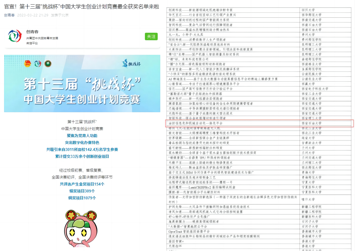 我校在第十三屆“挑戰(zhàn)杯”中國大學(xué)生創(chuàng)業(yè)計(jì)劃競賽中獲得國家級獎(jiǎng)項(xiàng)