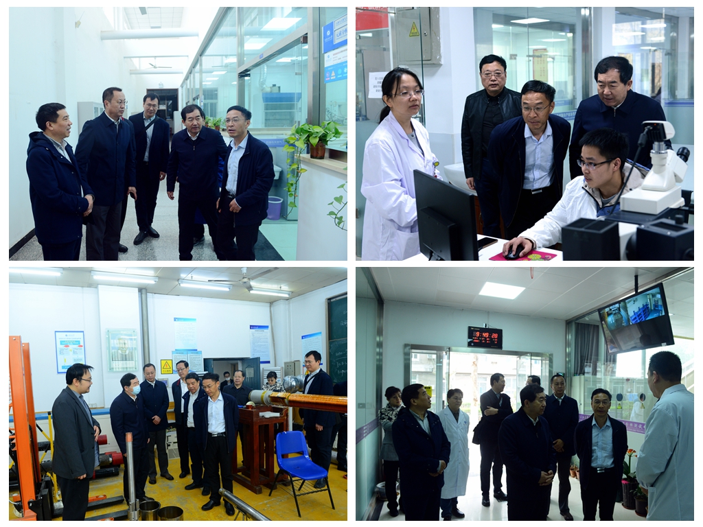 張烈輝一行實(shí)地參觀了陜西省油氣田特種增產(chǎn)技術(shù)重點(diǎn)實(shí)驗(yàn)室、陜西省油氣成藏地質(zhì)學(xué)重點(diǎn)實(shí)驗(yàn)室、陜西省油氣井測(cè)控技術(shù)重點(diǎn)實(shí)驗(yàn)室以及現(xiàn)代分析檢測(cè)中心等科研基地。