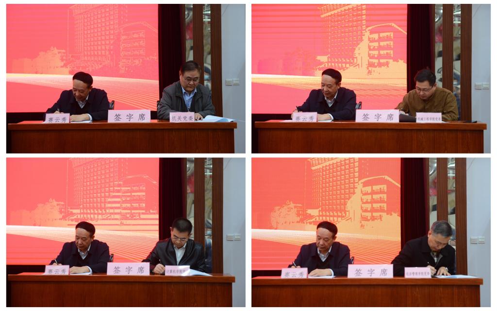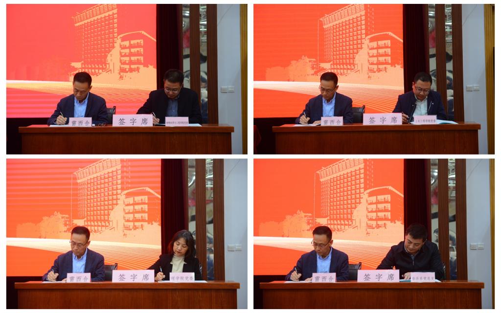會上,賽云秀、張木、雷西合分別與分管校領(lǐng)導(dǎo)、職能部門和院(系)級單位黨組織代表簽訂了全面從嚴治黨主體責任書、安全穩(wěn)定工作責任書、意識形態(tài)工作責任書。