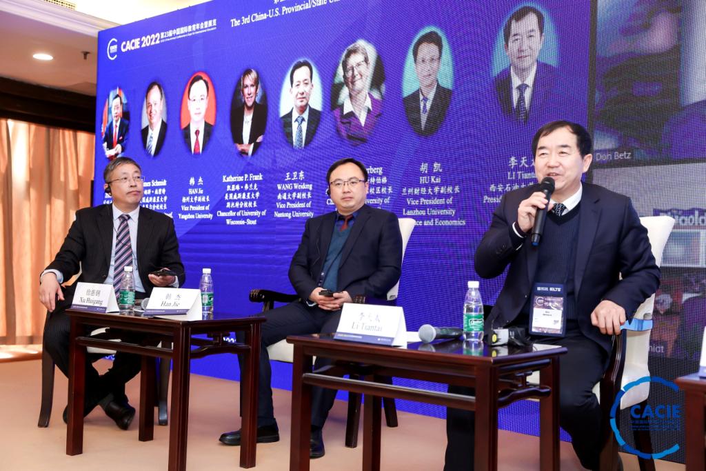 作為本屆年會(huì)的重要組成部分,第三屆中美省州大學(xué)校長論壇以線上+線下形式舉行,來自170多所中美高校的代表出席,邀請(qǐng)中美12所高校的校長作為發(fā)言和研討嘉賓。我校校長李天太是陜西高校唯一特邀論壇嘉賓。論壇主題為探索中美省州大學(xué)產(chǎn)教融合新模式,提高國際化人才培養(yǎng)質(zhì)量,服務(wù)地方經(jīng)濟(jì)社會(huì)新發(fā)展。論壇研討內(nèi)容包括以中美學(xué)分互認(rèn)、學(xué)位聯(lián)授項(xiàng)目為基礎(chǔ),以國際化人才培養(yǎng)為紐帶,構(gòu)建高水平、寬領(lǐng)域、可持續(xù)的中美省州高校合作交流平臺(tái)。通過教育國際交流打造適應(yīng)國家發(fā)展需求的新工科、新農(nóng)科、新商科等高質(zhì)量專業(yè)學(xué)科群,建設(shè)具有國際化水平的師資隊(duì)伍,加強(qiáng)中美高校之間學(xué)術(shù)科研合作,通過產(chǎn)教融合模式強(qiáng)化合作共贏理念,推進(jìn)中美省州高校教育交流、人才培養(yǎng)、校企合作、科研合作、人文交流等,為地方經(jīng)濟(jì)社會(huì)發(fā)展服務(wù)。