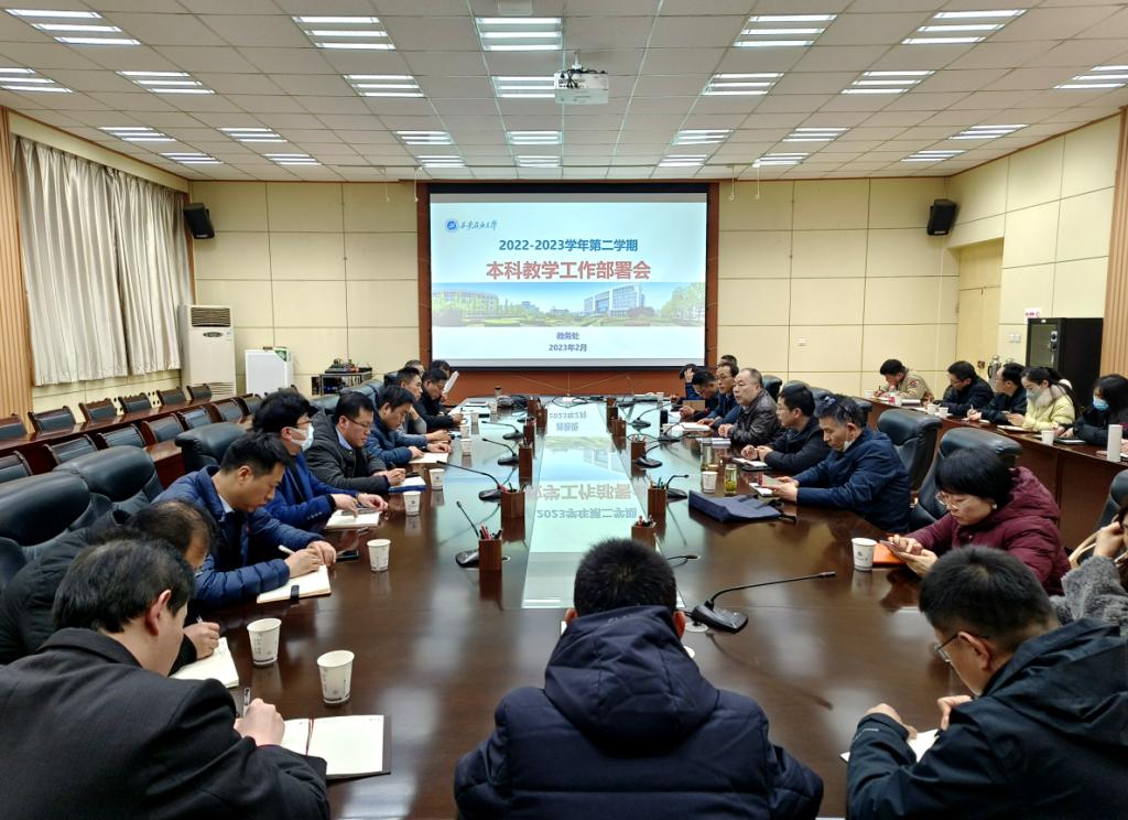陳軍斌指出,各教學(xué)單位要按照學(xué)校春季開學(xué)工作的總體要求,扎實(shí)做好新學(xué)期各項(xiàng)教學(xué)準(zhǔn)備工作,進(jìn)一步細(xì)化春季學(xué)期本科教學(xué)工作任務(wù),確保各項(xiàng)工作平穩(wěn)有序進(jìn)行。他強(qiáng)調(diào),一是各院(系)要高度重視上學(xué)期課程考核工作,結(jié)合學(xué)生上學(xué)期學(xué)習(xí)實(shí)際,精心組織開展線下串講和輔導(dǎo)答疑,合理安排公共課程和專業(yè)課程考試,同時(shí)加快進(jìn)度補(bǔ)足補(bǔ)齊實(shí)驗(yàn)實(shí)習(xí)等實(shí)踐教學(xué)環(huán)節(jié),確保各項(xiàng)教學(xué)工作高質(zhì)量完成。二是加強(qiáng)招生宣傳與錄取工作,招生工作是立德樹人的起點(diǎn),優(yōu)質(zhì)生源是人才培養(yǎng)質(zhì)量的基礎(chǔ),要不斷創(chuàng)新工作思路,豐富宣傳方式,強(qiáng)化生源基地建設(shè),總結(jié)凝練專業(yè)特色與人才培養(yǎng)成效,增強(qiáng)學(xué)校影響力,提升宣傳實(shí)效,貫徹招生宣傳永遠(yuǎn)在路上的理念。三是深化教育教學(xué)改革,聚焦本科教學(xué)核心指標(biāo),督導(dǎo)檢查教改項(xiàng)目落實(shí)進(jìn)度,強(qiáng)化一流專業(yè)建設(shè),以課程建設(shè)為突破口,積極籌備一流課程申報(bào),全面推進(jìn)課程思政建設(shè),打造優(yōu)秀課程教學(xué)團(tuán)隊(duì),加強(qiáng)一流教材申報(bào)與建設(shè),提前謀劃精準(zhǔn)施策,統(tǒng)籌做好申報(bào)各環(huán)節(jié)工作,持續(xù)推進(jìn)工程教育專業(yè)認(rèn)證工作,加強(qiáng)實(shí)驗(yàn)教學(xué)平臺建設(shè),著力培育高水平教學(xué)成果,推動(dòng)本科教育高質(zhì)量發(fā)展。四是圍繞新一輪本科教育教學(xué)審核評估指標(biāo)體系,制定學(xué)校工作體系和實(shí)施方案,扎實(shí)做好基礎(chǔ)數(shù)據(jù)統(tǒng)計(jì)工作,對標(biāo)對本籌備自評報(bào)告,提出問題清單,組織學(xué)習(xí)審核評估指標(biāo)體系,查缺補(bǔ)漏著手準(zhǔn)備基層教學(xué)資料歸檔工作。五是以審核評估指標(biāo)體系為依據(jù),做好教學(xué)經(jīng)費(fèi)預(yù)算,全力保障實(shí)驗(yàn)室建設(shè)、教學(xué)日常運(yùn)行及教學(xué)資源條件,同時(shí)保證經(jīng)費(fèi)投入的合理性、使用的有效性以及管理的規(guī)范性。六是扎實(shí)推進(jìn)師德教風(fēng)建設(shè),牢固樹立教師師德底線意識,嚴(yán)肅教風(fēng)教紀(jì),愛業(yè)愛生,身體力行,爭做“德高為師,身正為范”以及“四有”好老師。七是各級教學(xué)管理人員要嚴(yán)于律己,加強(qiáng)學(xué)習(xí),以身作則,提高教學(xué)管理水平,增強(qiáng)統(tǒng)籌協(xié)調(diào)、系統(tǒng)謀劃能力,做到“勤思考、勤動(dòng)手、勤動(dòng)嘴、勤動(dòng)腿”,深入課堂一線,深入基層教學(xué)組織,善于在細(xì)微處發(fā)現(xiàn)問題解決問題,以高效的教學(xué)管理促進(jìn)教學(xué)質(zhì)量有力提升。