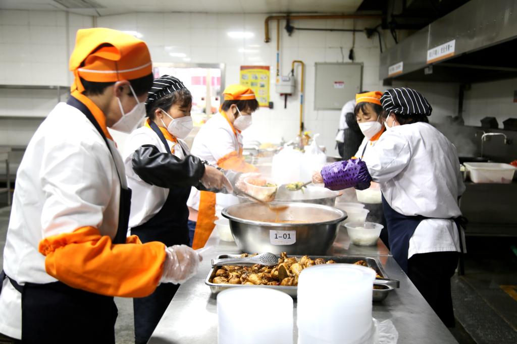 為確保隔離考場學(xué)生能順利考試,學(xué)校專門成立隔離考場供餐小組,統(tǒng)一調(diào)配各食堂供餐能力。從12月16日開始陸續(xù)抽調(diào)各食堂工作人員以及保潔人員60余名,精心制定了研究生招生考試期間隔離考場供餐菜譜、送取餐及保潔消殺方案等,共計(jì)為隔離考場950余名考生、監(jiān)考人員、考務(wù)人員等提供免費(fèi)送餐服務(wù)。此外,學(xué)校還在西區(qū)食堂為校外常規(guī)考場考生免費(fèi)提供姜茶和臨時(shí)休息場所。