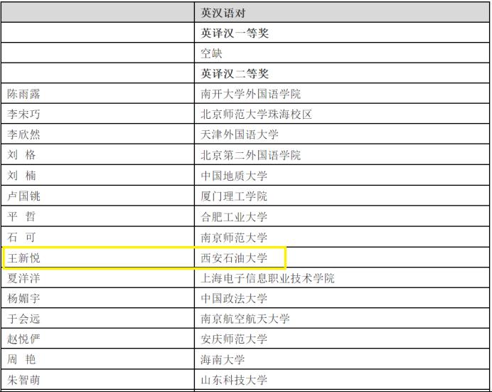 近日,第三十四屆韓素音國際翻譯大賽獲獎名單揭曉,我校外國語學(xué)院2021級翻譯碩士研究生王新悅同學(xué)分別獲英譯漢二等獎、漢譯英優(yōu)秀獎。