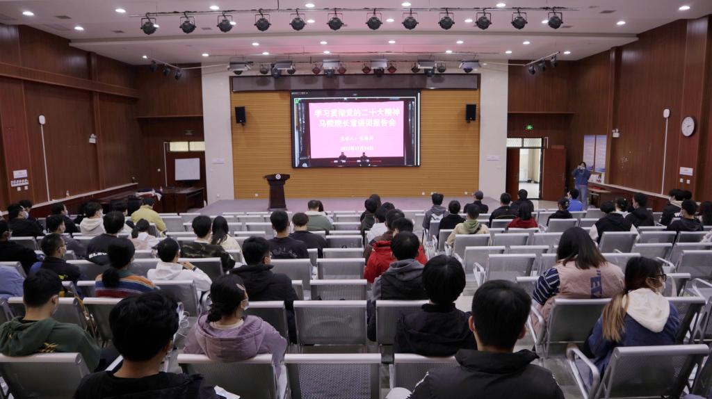 張海濤教授從黨的二十大的主題和主要成果、過去5年的工作和新時代10年的偉大變革、馬克思主義中國化時代化、中國式現(xiàn)代化、全面建設社會主義現(xiàn)代化國家的目標任務、堅持黨的全面領導和全面從嚴治黨、應對風險挑戰(zhàn)七個方面,對黨的二十大精神作了宣講。在宣講過程中,張海濤緊密聯(lián)系實際,結合發(fā)展的成果、詳實的數(shù)據(jù),對黨的二十大提出的新思想新論斷、作出的新部署新要求進行了系統(tǒng)講解和深入闡釋,引導廣大師生深刻領悟黨的二十大精神的豐富內(nèi)涵和實踐要求。