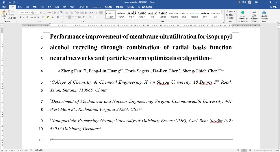 在上述研究基礎(chǔ)上,該科研團(tuán)隊(duì)的最新研究成果和論文《Performance improvement of membrane ultrafiltration for isopropyl alcohol recycling through combination of radial basis function neural networks and particle swarm optimization algorithm》也已通過(guò)《Journal of Membrane Science》審稿和錄用,預(yù)計(jì)將于明年正式發(fā)表。