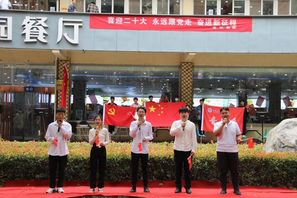 中午12點(diǎn)10分,“紅歌快閃”活動(dòng)正式開(kāi)始,首先以小合唱的形式演繹了《彈起我心愛(ài)的土琵琶》,在優(yōu)美的旋律中,學(xué)生飽含深情地演唱了《把一切獻(xiàn)給黨》《領(lǐng)航》,用歌聲致敬偉大的黨、偉大的祖國(guó)和偉大的時(shí)代。最后師生集體合唱了《輝煌明天》,用歌聲抒發(fā)心中愛(ài)國(guó)熱忱?;顒?dòng)在師生們“祝祖國(guó)母親生日快樂(lè)”的歡呼聲中圓滿(mǎn)結(jié)束。