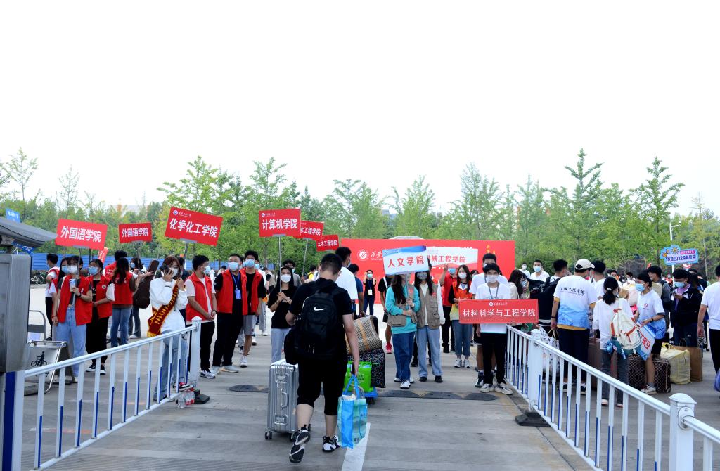 受疫情影響,今年迎新工作任務(wù)重、壓力大,學(xué)生工作隊伍面臨新挑戰(zhàn)。各院(系)嚴把入口關(guān),輔導(dǎo)員嚴格審批學(xué)生申請,做好做細臺賬,用心用情服務(wù),確保進校學(xué)生全部符合到校條件。提前建立微信群、QQ群與新生保持實時互動,答疑解惑。在新生接待點現(xiàn)場,學(xué)工隊伍全天堅守,及時辦理審核報到手續(xù),為每一名新生提供熱情周到的服務(wù)。他們活躍的身影,細致的工作,形成了一道靚麗的風(fēng)景線?!皺M幅迎風(fēng),校園卡羅列,手機鈴聲往復(fù)里的訊息是對2022級新生每一個問題的耐心解答,布置好化工院迎新點的一切,我靜坐在早上八九點鐘的太陽下,等待著和早上八九點鐘的太陽撞個滿懷?!被瘜W(xué)化工學(xué)院新生輔導(dǎo)員秦嶺講述了自己迎新的準(zhǔn)備工作。