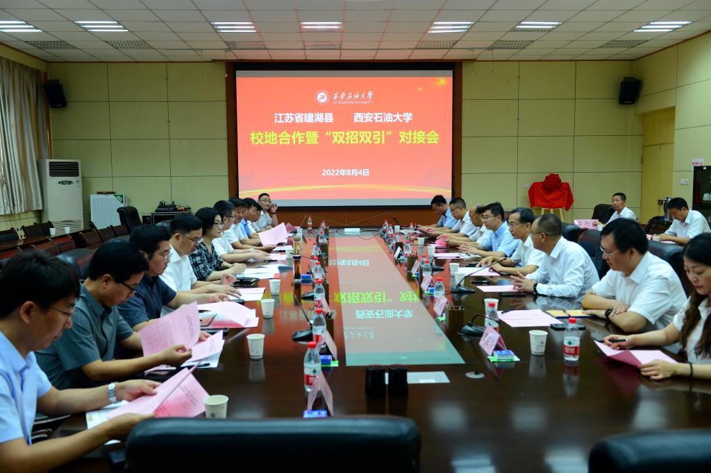 8月4日上午,我校與建湖縣校地合作暨“雙招雙引”對(duì)接會(huì)在雁塔校區(qū)會(huì)議中心第一會(huì)議室舉行。學(xué)校黨委副書(shū)記張木,建湖縣委常委、組織部部長(zhǎng)、開(kāi)發(fā)區(qū)黨工委書(shū)記孫紅,建湖縣委組織部副部長(zhǎng)、縣委黨建辦主任孫盤(pán)檜,建湖縣科技局局長(zhǎng)、黨組書(shū)記曾令群,建湖縣科技局副局長(zhǎng)呂忠東及建湖縣有關(guān)石油石化企業(yè)負(fù)責(zé)人出席對(duì)接會(huì)。對(duì)接會(huì)由黨政辦公室主任趙健主持。