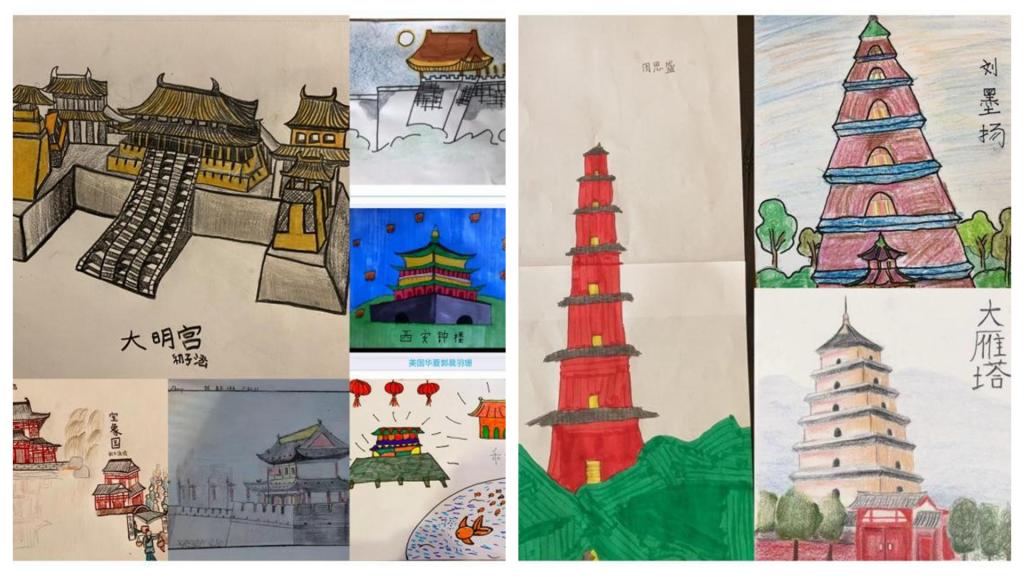 這10天的云端學(xué)習(xí),小營員們在老師的帶領(lǐng)下,云游在中華五千年悠久歷史文明的長河中,學(xué)習(xí)以長安為都城的漢、唐兩朝有趣的歷史故事,了解歷史典故;學(xué)習(xí)書法、剪紙、太極拳和古箏,感受妙趣橫生的中華傳統(tǒng)文化;云游長安城,打卡西安城墻、書院門、鐘樓等,聆聽西安的人文故事,探尋長安城的變遷;云端探尋回民街、品味一碗羊肉泡饃里的市井煙火;走進王進喜鐵人紀念館,聆聽石油背后的故事,感知永不言棄的鐵人精神。小營員們在認真學(xué)習(xí)的基礎(chǔ)上,做到學(xué)有所思,學(xué)有所獲,學(xué)有所悟,通過錄制音頻、視頻、繪畫圖文等方式制作完成各種打卡作品,增加了小營員們的參與感和對中華傳統(tǒng)藝術(shù)的興趣,更加深刻地感受中華傳統(tǒng)文化的魅力,每個人都力爭成為中華優(yōu)秀傳統(tǒng)文化的小小傳播者。