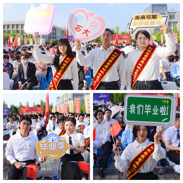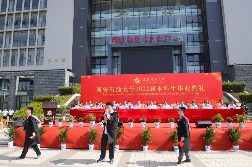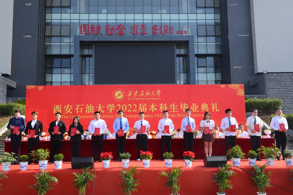 副校長(zhǎng)陳軍斌宣讀了《西安石油大學(xué)關(guān)于2022屆本科學(xué)生準(zhǔn)予畢業(yè)、頒發(fā)畢業(yè)證和授予學(xué)士學(xué)位的決定》,副校長(zhǎng)楊戰(zhàn)社宣讀了《西安石油大學(xué)關(guān)于表彰2022屆優(yōu)秀畢業(yè)生的決定》,校黨委副書(shū)記雷西合宣讀了《西安石油大學(xué)校友總會(huì)關(guān)于聘任2022屆年級(jí)校友理事的決定》。與會(huì)校領(lǐng)導(dǎo)為志愿服務(wù)西部計(jì)劃、榮獲優(yōu)秀畢業(yè)生榮譽(yù)稱(chēng)號(hào)的學(xué)生代表頒發(fā)了榮譽(yù)證書(shū)并贈(zèng)送了“原油”印章紀(jì)念品,為年級(jí)理事代表頒發(fā)了聘任證書(shū)和紀(jì)念品。