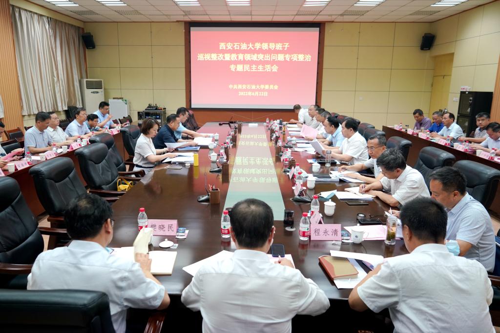 6月22日下午,我校在雁塔校區(qū)會議中心第一會議室召開校級領(lǐng)導(dǎo)班子巡視整改暨教育領(lǐng)域突出問題專項整治專題民主生活會。專題民主生活會指導(dǎo)組組長,省委教育工委、省教育廳一級巡視員劉寶平,專題民主生活會指導(dǎo)組成員,省委教育工委、省教育廳直屬機關(guān)黨委專職副書記李建偉,省委教育工委組織部二級調(diào)研員黃婷華等同志到會指導(dǎo)。會議由校黨委書記賽云秀主持。校黨委副書記、校長李天太等全體校領(lǐng)導(dǎo)參加會議。