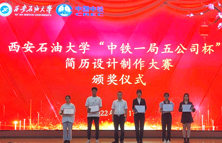 為有效提升我校學(xué)生的簡歷設(shè)計制作能力,引導(dǎo)學(xué)生樹立科學(xué)的崗位認(rèn)知,6月17日下午,由陜西省普通高等學(xué)校畢業(yè)生就業(yè)服務(wù)中心主辦、我校和中鐵一局集團(tuán)第五工程公司承辦的“中鐵一局五公司杯”簡歷設(shè)計制作大賽頒獎儀式在我校鄠邑校區(qū)弘石學(xué)術(shù)報告廳舉行。中鐵一局集團(tuán)第五工程有限公司副總經(jīng)理黃曉春,我校學(xué)生工作部(處)、教務(wù)處相關(guān)負(fù)責(zé)人出席頒獎儀式。