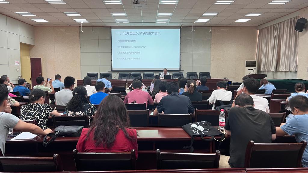 在授課中,張木指出,馬克思主義揭示了人類社會(huì)的發(fā)展規(guī)律,是認(rèn)識(shí)世界、改造世界的科學(xué)真理。百年以來(lái),中國(guó)共產(chǎn)黨堅(jiān)持把馬克思主義寫在自己的旗幟上,不斷推進(jìn)馬克思主義中國(guó)化時(shí)代化,用博大胸懷吸收人類創(chuàng)造的一切優(yōu)秀文明成果,用馬克思主義中國(guó)化的科學(xué)理論引領(lǐng)偉大實(shí)踐。張木從馬克思主義產(chǎn)生的歷史背景、解決的基本問(wèn)題以及馬克思主義理論的三大體系、鮮明特征、學(xué)習(xí)方法、馬克思主義政治經(jīng)濟(jì)學(xué)等方面,詳細(xì)講授了馬克思主義的基本原理,指出學(xué)習(xí)馬克思主義是我們終生的事業(yè),要深入學(xué)、系統(tǒng)學(xué)、反復(fù)學(xué)、了然于胸學(xué)、學(xué)用結(jié)合學(xué),將馬克思主義作為人生的指南。張木最后強(qiáng)調(diào),習(xí)近平新時(shí)代中國(guó)特色社會(huì)主義思想是當(dāng)代中國(guó)馬克思主義、二十一世紀(jì)馬克思主義,是中華文化和中國(guó)精神的時(shí)代精華。當(dāng)代青年學(xué)習(xí)和實(shí)踐馬克思主義,最根本的就是要自覺(jué)以習(xí)近平新時(shí)代中國(guó)特色社會(huì)主義思想鑄魂立德。
