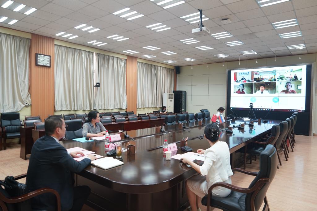 6月9日下午,我校與校際合作院校俄羅斯東西伯利亞國立文化學(xué)院共同舉辦俄語文化節(jié),活動在雁塔校區(qū)學(xué)術(shù)會議中心第二會議室和鄠邑校區(qū)圖書館第二會議室以線上視頻形式同步進(jìn)行。副校長張榮軍與東西伯利亞國立文化學(xué)院副校長齊列姆皮洛娃出席活動并分別發(fā)表致辭,活動由國際教育學(xué)院院長董皓主持,國際交流與合作處、外國語學(xué)院相關(guān)負(fù)責(zé)人以及師生代表20余人參加活動。