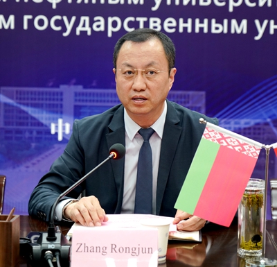 奧列格·羅曼諾夫在致辭中表示,中國是最可靠的合作伙伴,他們已經(jīng)做好了與我校開展全方位合作的準備。他說,波洛茨克國立大學是白俄羅斯50多所高校中最領(lǐng)先的院校之一,擁有先進的教學科研設(shè)施,與白俄羅斯、俄羅斯石油化工企業(yè)聯(lián)系緊密,雙方學校是理想的國際合作伙伴。相信兩校可以充分發(fā)揮各自優(yōu)勢,合作共贏、共同發(fā)展,實現(xiàn)合作交流的常態(tài)化、合作成果的長效化,并期待新冠疫情早日結(jié)束,雙方學??梢越涣骰ピL,促進合作項目的多元化。