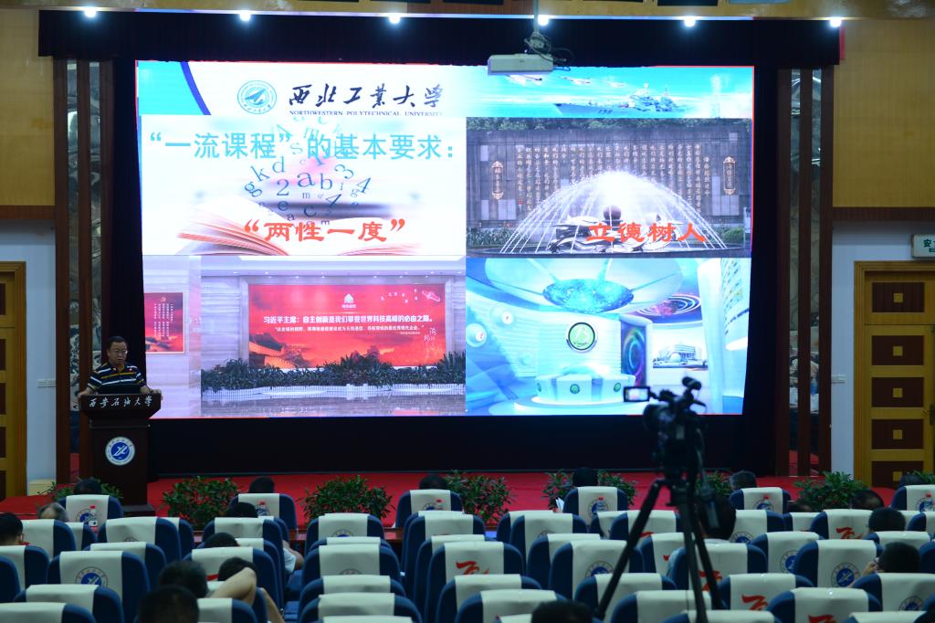 國(guó)家級(jí)教學(xué)名師,西北工業(yè)大學(xué)博士生導(dǎo)師段哲民教授作了題為《打造一流課程,提高教學(xué)質(zhì)量——國(guó)家一流課程建設(shè)思考》的專題報(bào)告,針對(duì)轉(zhuǎn)變觀念,理念新起來(lái);目標(biāo)導(dǎo)向,課程優(yōu)起來(lái);提升能力,教師強(qiáng)起來(lái);改革方法,課堂活起來(lái);科學(xué)評(píng)價(jià),學(xué)生忙起來(lái);強(qiáng)化管理,制度嚴(yán)起來(lái);政策激勵(lì),教學(xué)熱起來(lái)等7個(gè)方面以及課程思政與一流課程的關(guān)系進(jìn)行了分享。