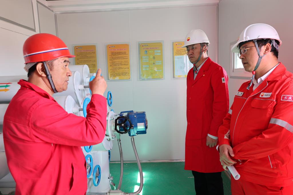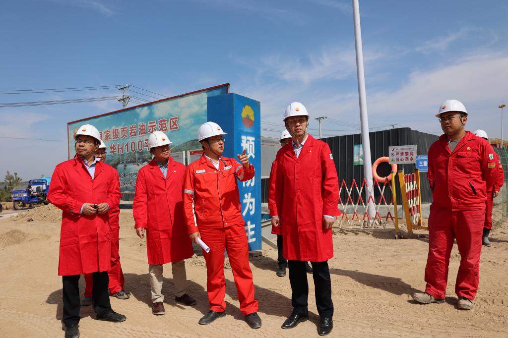 張榮軍一行參觀了位于甘肅省慶陽市慶城縣的隴東國家級(jí)頁巖油示范區(qū)華H100平臺(tái),并與現(xiàn)場(chǎng)技術(shù)人員進(jìn)行了深入交流和探討。頁巖油產(chǎn)能建設(shè)項(xiàng)目組壓裂經(jīng)理、我校石油工程學(xué)院99級(jí)畢業(yè)生齊銀向張榮軍一行介紹了生產(chǎn)情況。