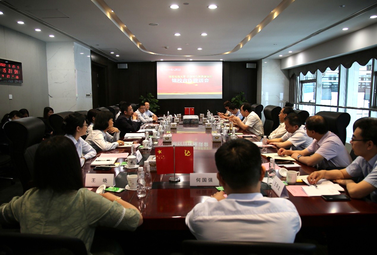 蒙震代表中國(guó)銀行陜西省分行對(duì)李天太一行的來(lái)訪表示熱烈歡迎,向?qū)W校長(zhǎng)期以來(lái)對(duì)中國(guó)銀行的信任和支持表示誠(chéng)摯的感謝。他高度肯定了西安石油大學(xué)秉承“愛國(guó)奉獻(xiàn)、艱苦奮斗、科學(xué)求實(shí)、開拓進(jìn)取”的辦學(xué)精神和“四實(shí)一新”育人標(biāo)準(zhǔn),對(duì)雙方“十四五”期間戰(zhàn)略合作前景充滿信心。他談到,中國(guó)銀行高度重視教育行業(yè)發(fā)展,將高校視作重要的服務(wù)對(duì)象與合作伙伴。近年來(lái),中國(guó)銀行充分發(fā)揮中銀集團(tuán)業(yè)務(wù)優(yōu)勢(shì),持續(xù)提升科技金融服務(wù)能力,聯(lián)合教育主管部門和高校開展了一系列有益探索與創(chuàng)新,傾力支持教育事業(yè)發(fā)展。他表示,中國(guó)銀行陜西省分行將著力在信息化校園、黨建共建、拓崗就業(yè)等領(lǐng)域與學(xué)校開展多層次廣泛合作,不斷探索銀校合作新模式、新機(jī)制、新產(chǎn)品,為助推學(xué)校高質(zhì)量發(fā)展貢獻(xiàn)力量。
