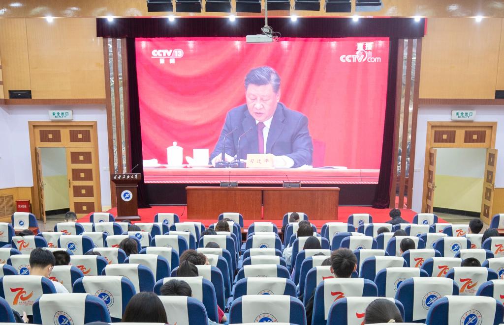 5月10日,慶祝中國(guó)共產(chǎn)主義青年團(tuán)成立100周年大會(huì)在京隆重舉行。中共中央總書(shū)記、國(guó)家主席、中央軍委主席習(xí)近平出席大會(huì)并發(fā)表重要講話(huà)。習(xí)近平總書(shū)記代表黨中央,向全體共青團(tuán)員和各級(jí)共青團(tuán)組織、團(tuán)干部,致以熱烈的祝賀和誠(chéng)摯的問(wèn)候。我校組織校黨委理論學(xué)習(xí)中心組成員,各單位負(fù)責(zé)人,教師、輔導(dǎo)員、團(tuán)學(xué)干部、團(tuán)員青年代表分別于雁塔校區(qū)、鄠邑校區(qū)18個(gè)分會(huì)場(chǎng)收聽(tīng)收看慶祝大會(huì)直播。會(huì)后,我校在鄠邑校區(qū)組織團(tuán)學(xué)干部召開(kāi)貫徹落實(shí)習(xí)近平總書(shū)記慶祝共青團(tuán)成立100周年大會(huì)重要講話(huà)精神師生座談會(huì)。習(xí)近平總書(shū)記的重要講話(huà)在我校師生中引發(fā)熱烈反響。