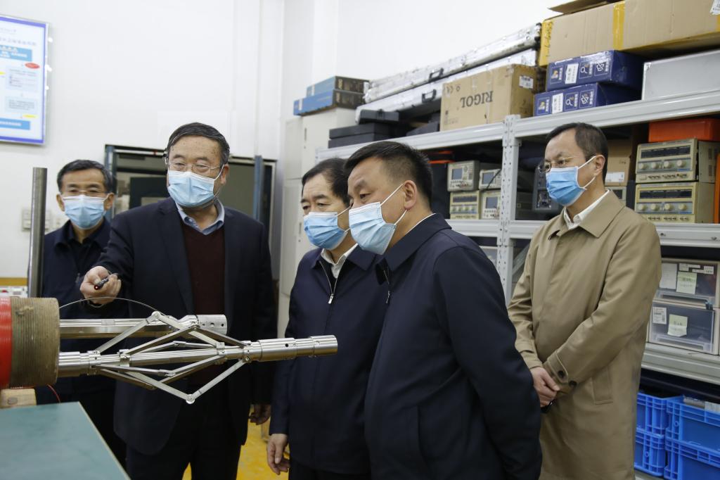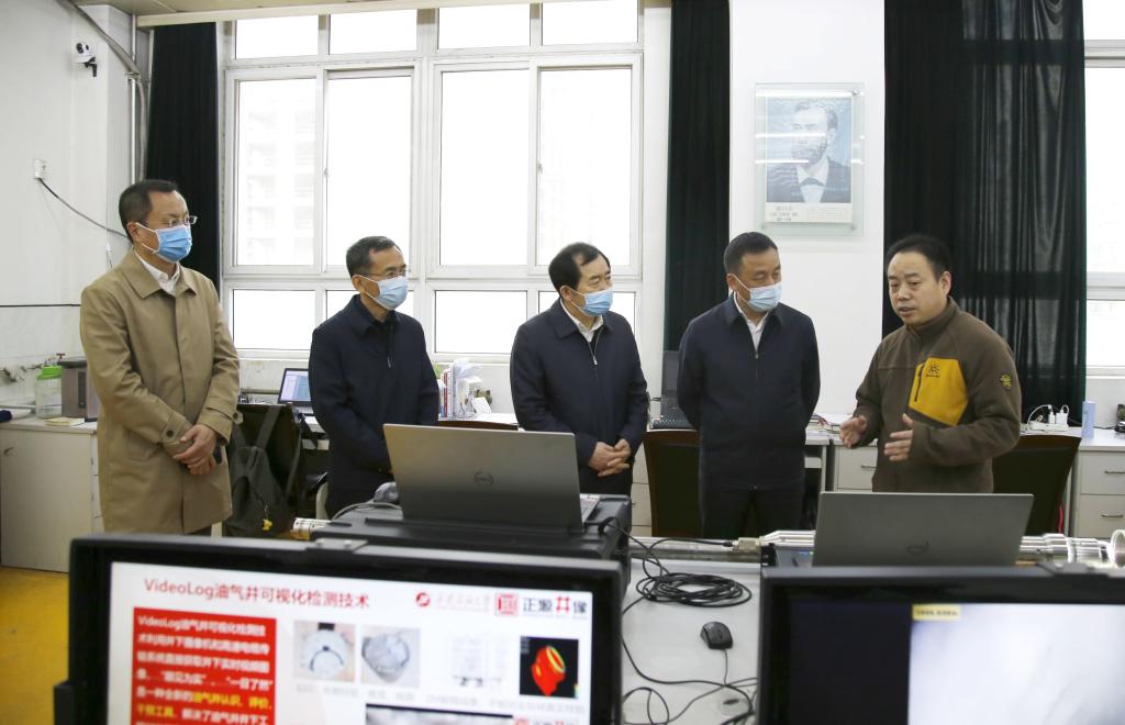 調(diào)研期間,何江川書記在學校領(lǐng)導陪同下參觀了油氣鉆井國家工程實驗室井下測控研究室和陜西省油氣井測控技術(shù)重點實驗室,詳細了解了旋轉(zhuǎn)導向鉆井技術(shù)與裝備、測井技術(shù)與裝備、油氣井可視化檢測技術(shù)與裝備的研發(fā)進展、核心技術(shù)和應用情況,并與研發(fā)人員進行了深入的交流和探討。