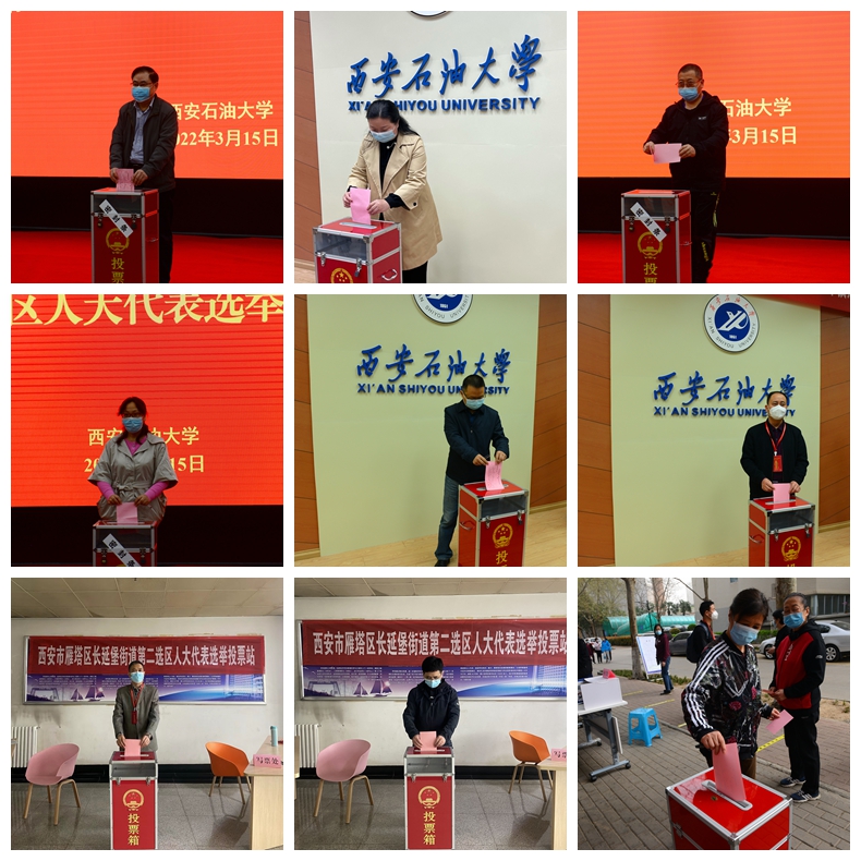 人大代表換屆選舉是我校師生政治生活中的一件大事,校黨委高度重視此次雁塔區(qū)人大代表換屆選舉工作,成立了選舉工作領(lǐng)導小組和選舉辦公室,積極聯(lián)系雁塔區(qū)長延堡街道選舉工作指導小組,貫徹落實選舉工作要求,并多次召開會議研究部署相關(guān)工作。選舉工作自去年10月開始啟動,由黨委組織部牽頭,在各院(系)級單位黨組織及相關(guān)職能部門的鼎力配合下,按照疫情防控有關(guān)要求,認真制定選舉工作方案,編制工作手冊,組織人員培訓;依法完成了宣傳動員、選民登記、公布選民、醞釀提名推薦、確定候選人、組織代表候選人與選民見面以及投票選舉等階段,最終圓滿完成本次人大代表換屆選舉工作。