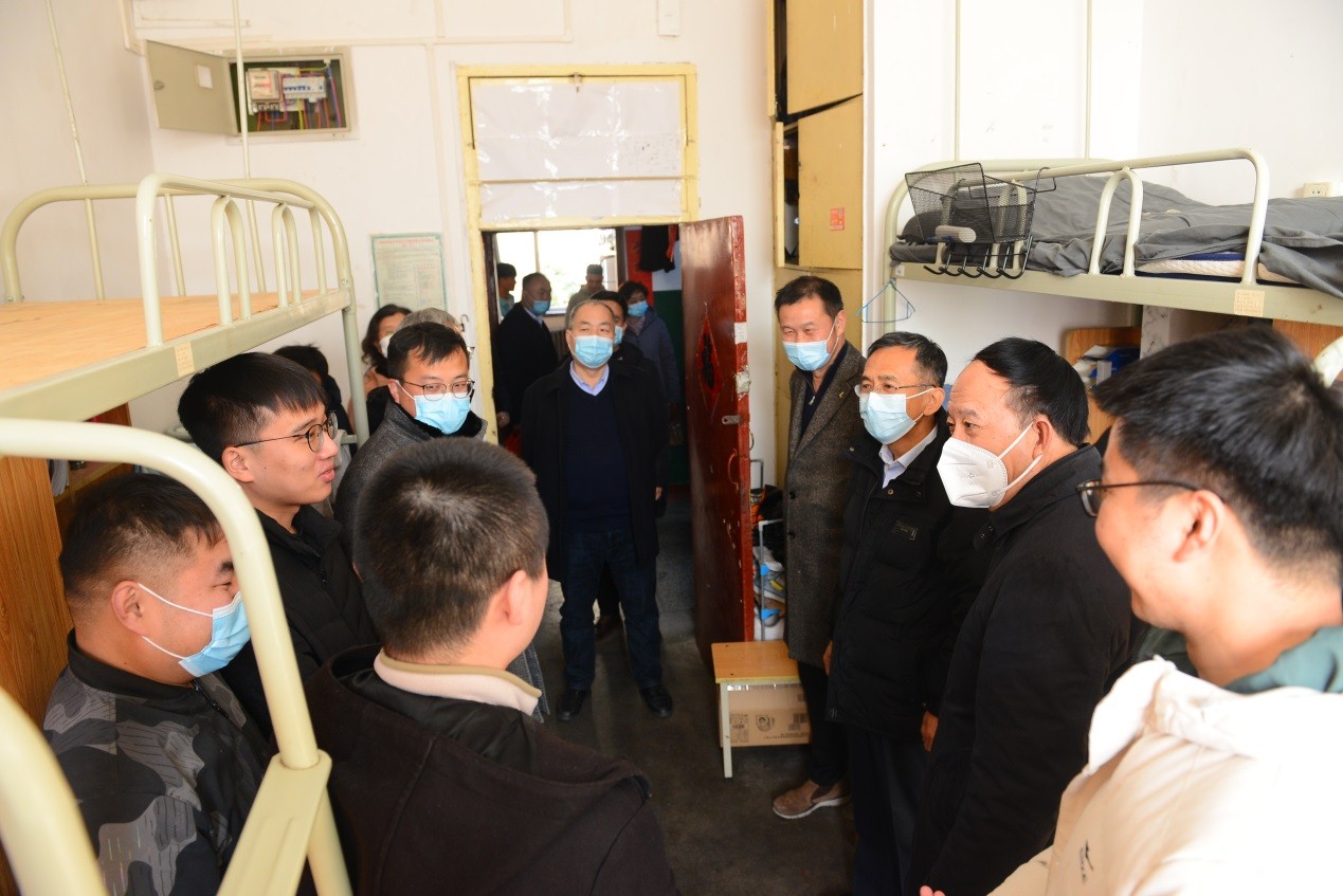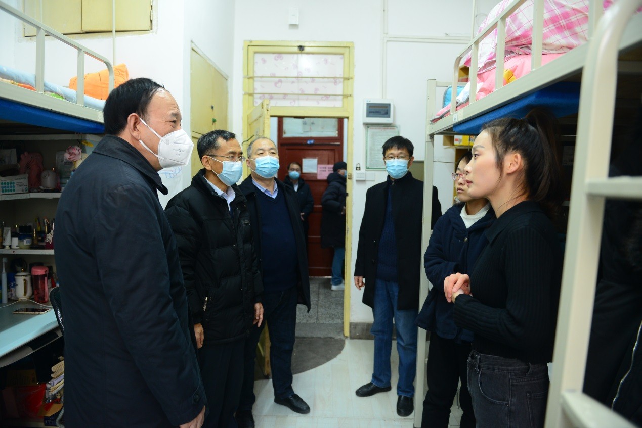 校領(lǐng)導(dǎo)們走進學(xué)生宿舍,與留校學(xué)生進行了親切交流,詢問了留校學(xué)生寒假學(xué)習(xí)、科研計劃、家鄉(xiāng)疫情等情況,叮囑大家做好個人防護,充分利用假期提升自己。他們表示,學(xué)校非常關(guān)心留校學(xué)生,將全力為留校學(xué)生在校學(xué)習(xí)生活做好服務(wù),確保寒假期間校園安全穩(wěn)定,讓大家度過一個平安、快樂、祥和的春節(jié)。