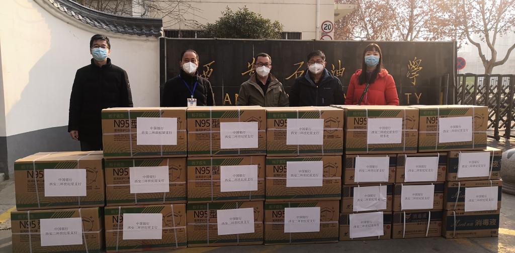13日,經(jīng)我??倳嫀煼畷悦衤?lián)系,中國銀行西安二環(huán)世紀(jì)星支行為我校捐贈一批疫情防控物資,其中包含N95醫(yī)用防護(hù)口罩10300只,酒精225升。