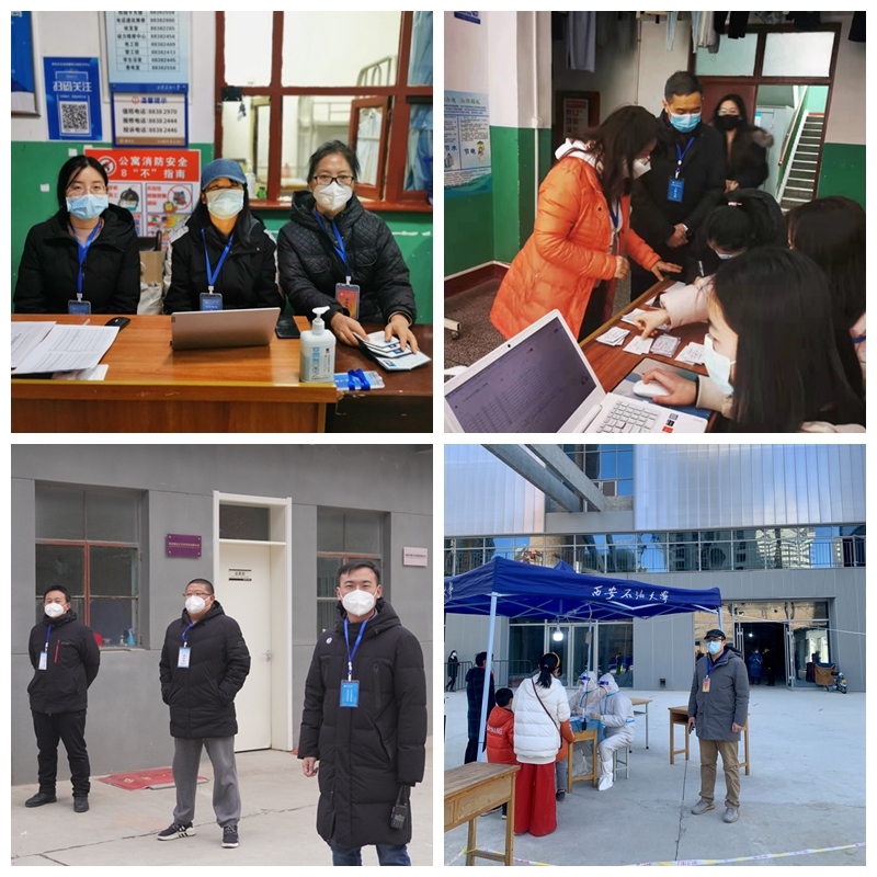 1226日以來,疫情仍呈快速發(fā)展態(tài)勢,西安市疫情防控提級管理,為最大力度降低疫情蔓延擴散風(fēng)險,擔(dān)任雁塔校區(qū)門禁管理值班工作的干部同時巡查校園,發(fā)現(xiàn)人員聚集等情況及時提醒勸導(dǎo),減少校內(nèi)非必要人員流動。30日,根據(jù)學(xué)校疫情防控實際需要,經(jīng)各院(系)級單位黨組織推薦黨員教師,成立黨員先鋒隊,加強工作力量,有力有效做好防控工作,用實際行動保護師生健康,維護學(xué)校穩(wěn)定。黨員先鋒隊放棄工作之余的休息時間,積極響應(yīng)號召,盡職盡責(zé)完成各項疫情防控任務(wù)。為確保在校學(xué)生的穩(wěn)定安全,做好疫情防控下管理服務(wù)工作,20余位黨員導(dǎo)師輪流駐守學(xué)生宿舍樓,值班執(zhí)勤維持秩序,走進宿舍了解學(xué)生所想所需,切實保障學(xué)生身心健康。130余名巡查黨員教師分別于雁塔校區(qū)南院7個點位、家屬區(qū)6個點位實行全天定點輪值,提醒全校師生員工除核酸采樣之外不出戶、不聚集,主動居家隔離,進一步加強校園巡查,校園巡查工作正在持續(xù)進行。黨員先鋒隊干部主動擔(dān)當,輪流值守超市、蔬菜店等關(guān)鍵卡口,維護校園秩序,切實織密織牢校園疫情防控網(wǎng)。