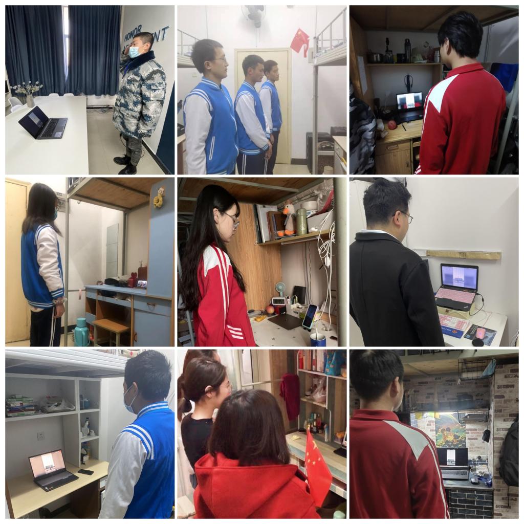紅日初升,其道大光。清晨7點(diǎn)半,師生們就陸續(xù)進(jìn)入直播間,等候著國(guó)旗升起的莊嚴(yán)時(shí)刻。8時(shí)整,在全校師生的深情注目下,升國(guó)旗儀式正式開始,國(guó)旗護(hù)衛(wèi)隊(duì)的同學(xué)邁著整齊劃一、鏗鏘有力的步伐從學(xué)校廣場(chǎng)出發(fā),護(hù)送著國(guó)旗正步走向旗桿。伴隨著莊嚴(yán)的《國(guó)歌》,國(guó)旗護(hù)衛(wèi)隊(duì)隊(duì)員將鮮艷的五星紅旗高高托舉,緩緩地升至最高點(diǎn)。在屏幕前的同學(xué)們懷著崇敬的心情,在宿舍站立,共唱國(guó)歌、行注目禮,深懷對(duì)祖國(guó)和人民的無(wú)限熱愛與戰(zhàn)勝本次疫情、攻堅(jiān)克難的堅(jiān)定信心。